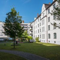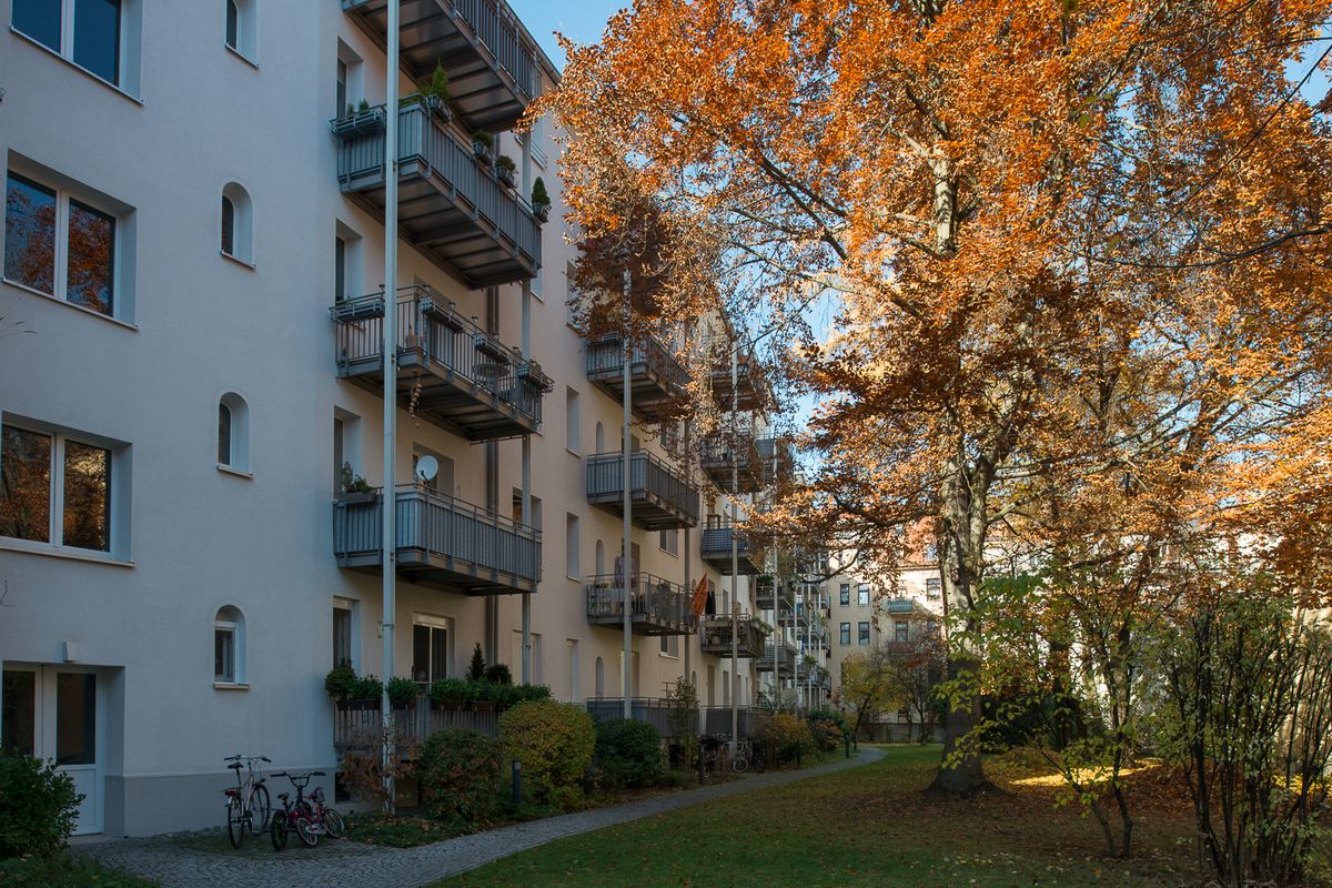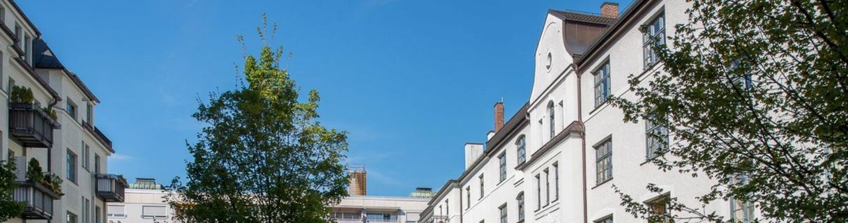 Sehr zentral liegen auch unsere beiden Häuser an der Landshuter Allee, die zum Teil ebenfalls über einen Balkon in einen kleinen, grünen Hinterhof verfügen.